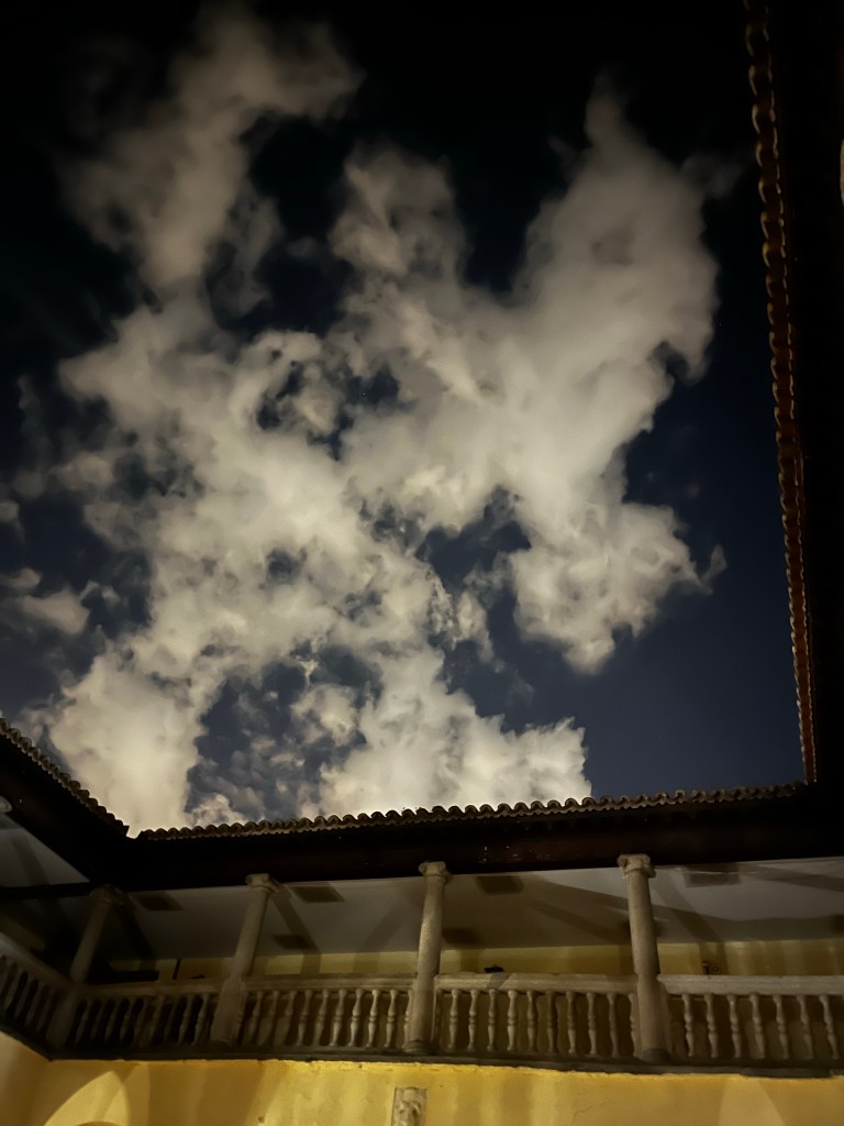 Una mirada solitaria al cielo nocturno, que amenaza o juega.
